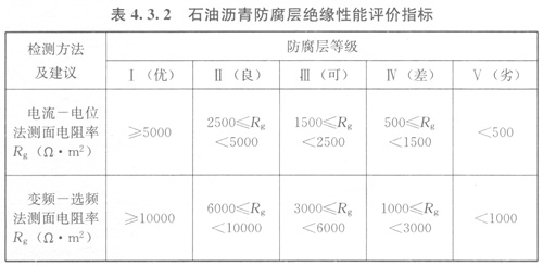 4.3.2防腐層絕緣性能評(píng)價(jià)應(yīng)符合下列規(guī)定: