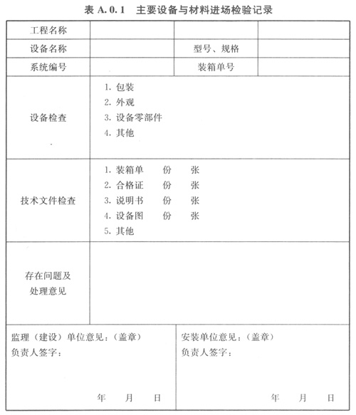 A01主要設(shè)備與材料進場檢驗記錄可按表A01的格式記錄。