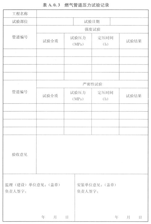 A03燃氣管道壓力試驗記錄可按表A03的格式記錄。