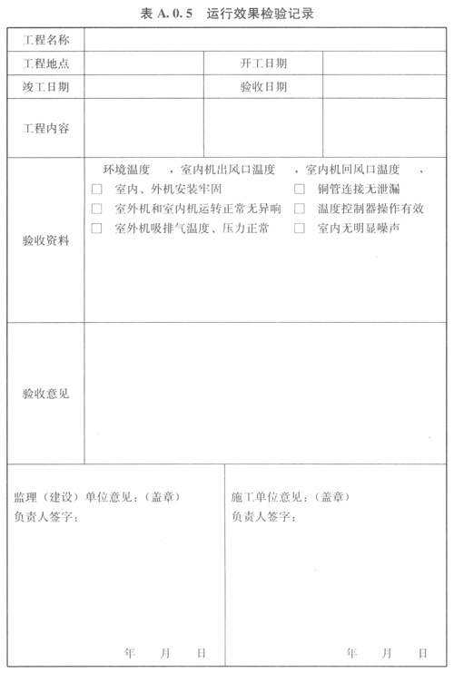 A05運行效果檢驗記錄可按表A05的格式記錄。