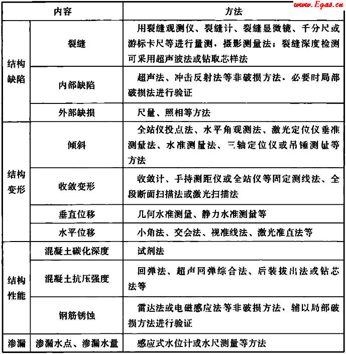 表4.4.12 管廊本體檢測(cè)內(nèi)容和方法