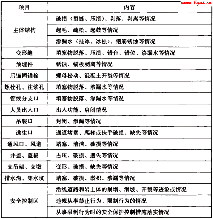 4.3.1 管廊本體巡檢的項(xiàng)目和內(nèi)容應(yīng)符合表4.3.1的規(guī)定。