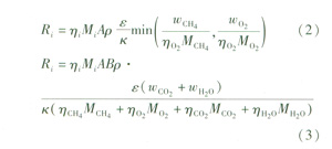 天然氣的成分主要是甲烷,燃燒時采用單步的Arrhenius方法: