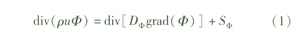 與火焰燃燒一樣,天然氣的無焰氧化包含湍流流動,本文采用標(biāo)準(zhǔn)的可壓縮k-ε模型。穩(wěn)態(tài)形式的動量、能量和物種輸運方程可寫成以下通用形式: