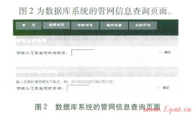 圖2為數(shù)據(jù)庫系統(tǒng)的管網(wǎng)信息查詢頁面。