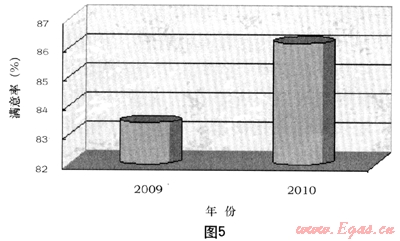 圖5為我公司2009/2010年第三方測評抄表業(yè)務(wù)滿意度變化圖。我們從圖5可以看出,自從推廣了一報一抄抄表模式后,大大減少了入戶次數(shù),抄表擾民系數(shù)降低,得到了廣大用戶的認(rèn)可。由第三方開展的客戶滿意度調(diào)查結(jié)果顯示,2010年的抄表業(yè)務(wù)客戶滿意度從2009年的83.42%提升到86.16%,上升近3個百分點(diǎn)。