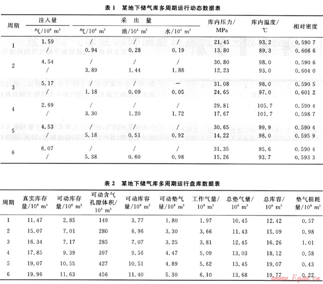 根據(jù)新建的盤(pán)庫(kù)數(shù)學(xué)模型,采用迭代算法,利用某地下儲(chǔ)氣庫(kù)多周期運(yùn)行注采動(dòng)態(tài)系列數(shù)據(jù),連續(xù)計(jì)算了各周期末的盤(pán)庫(kù)技術(shù)指標(biāo),見(jiàn)表2。