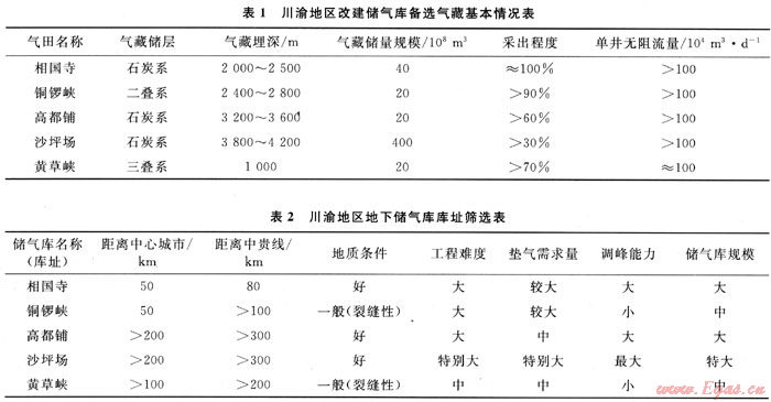 為解決調(diào)峰和應(yīng)急問題,儲氣庫應(yīng)建在輸氣管線末端或是靠近主要用氣中心。在川渝地區(qū)主要應(yīng)選擇靠近重慶和成都市區(qū),或是用戶較多的蜀南地區(qū)。另外,就是要毗鄰大型長輸管線。