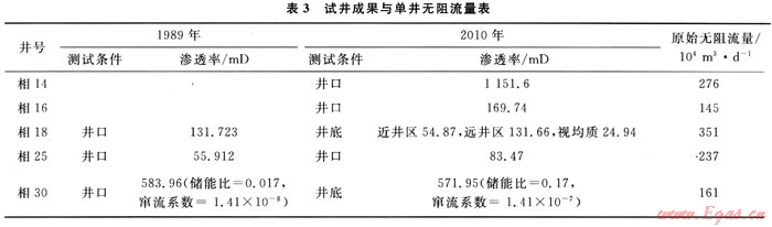1) 氣藏生產(chǎn)壓差小,單井產(chǎn)量高。從1989年和2010年試井資料(表3)分析表明:儲層滲透率高,且未隨地層壓力下降而降低;單井日產(chǎn)量高,井均無阻流量超過200×104m3/d,具備了強(qiáng)注強(qiáng)采的條件。同時氣藏井間連通性好,無明顯壓降漏斗(圖2),有利于氣庫均衡注采。