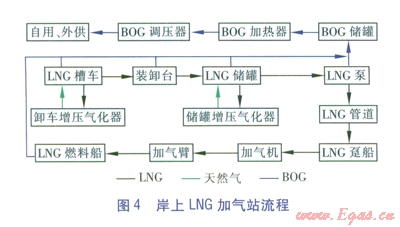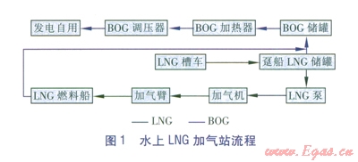 LNG儲存及加氣系統(tǒng)產(chǎn)生的BOG氣體經(jīng)儲存、加熱、調(diào)壓后,部分供岸上站內(nèi)生活自用,其余部分供應站外用戶。