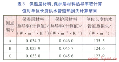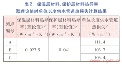 ①參與計算單位長度供熱管道熱損失的保溫層材料、保護(hù)層材料熱導(dǎo)率,對計算結(jié)果影響較大。應(yīng)根據(jù)實(shí)測供水溫度對保溫層材料、保護(hù)層材料熱導(dǎo)率進(jìn)行求解,以計算準(zhǔn)確的熱損失。