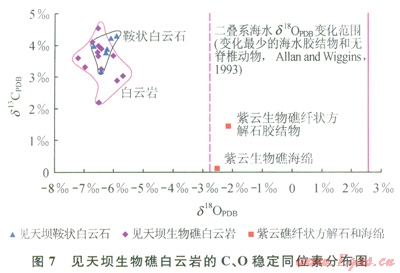 3.3 礁白云巖的碳氧穩(wěn)定同位素