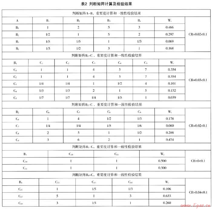 我們在調研中反復向業(yè)內專家咨詢,綜合各位專家意見,并結合調研數(shù)據(jù),建立了判斷矩陣,并根據(jù)層次分析的一般方法(和積法),計算各要素的權重和進行一致性檢驗。限于篇幅,計算過程不詳細敘述,結果見表2。